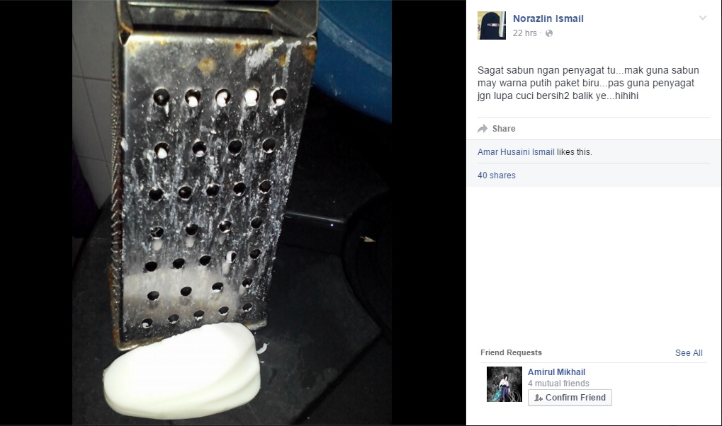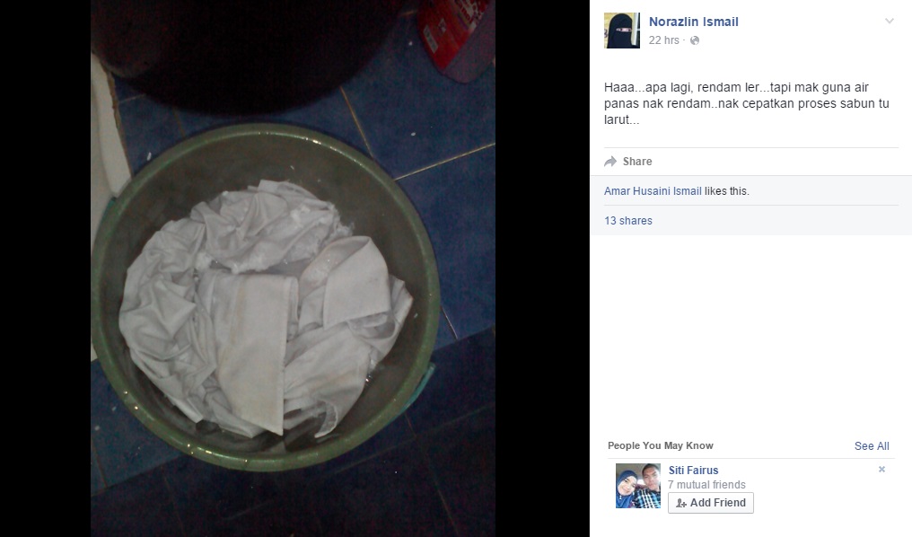 Assalamualaikum….Saja nak share u allz…hati mak ada munga-munga…senang keje mak…tak yah nak sental byk²…xpyh rendam lama2…pakai sabun mandi je..x kisah jenama apa, janji sabun tu warna putih… Meh mak ajar step by step…