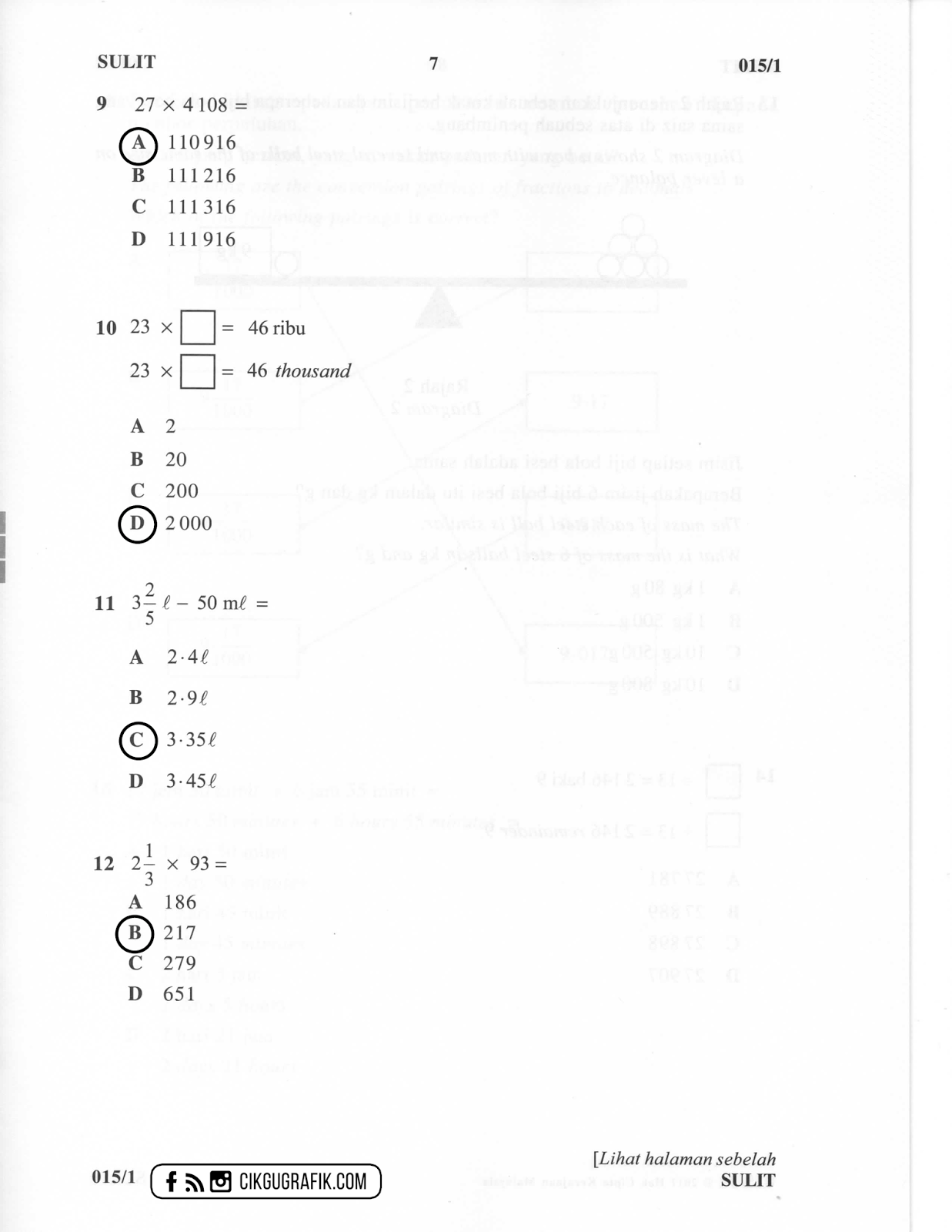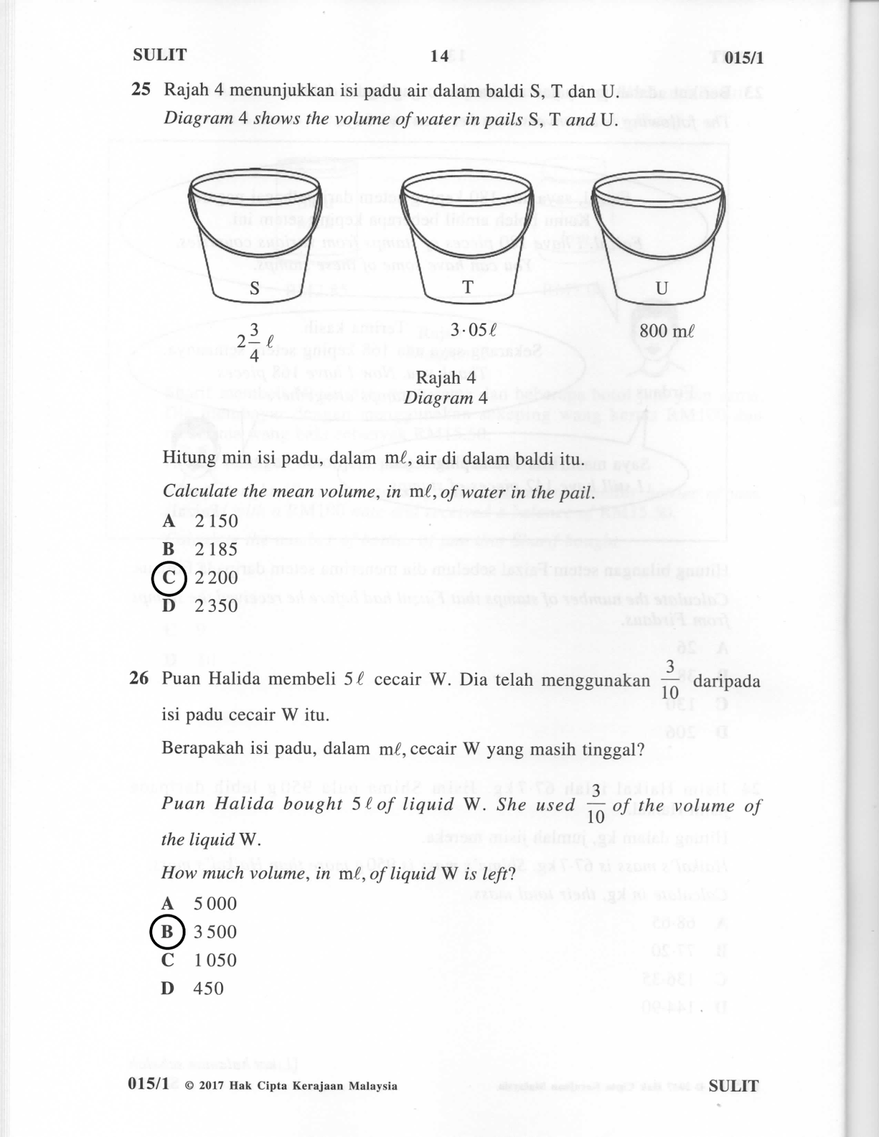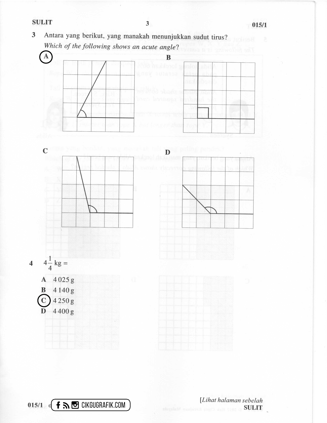 Jawapan dan Soalan UPSR Matematik Kertas 1 2017