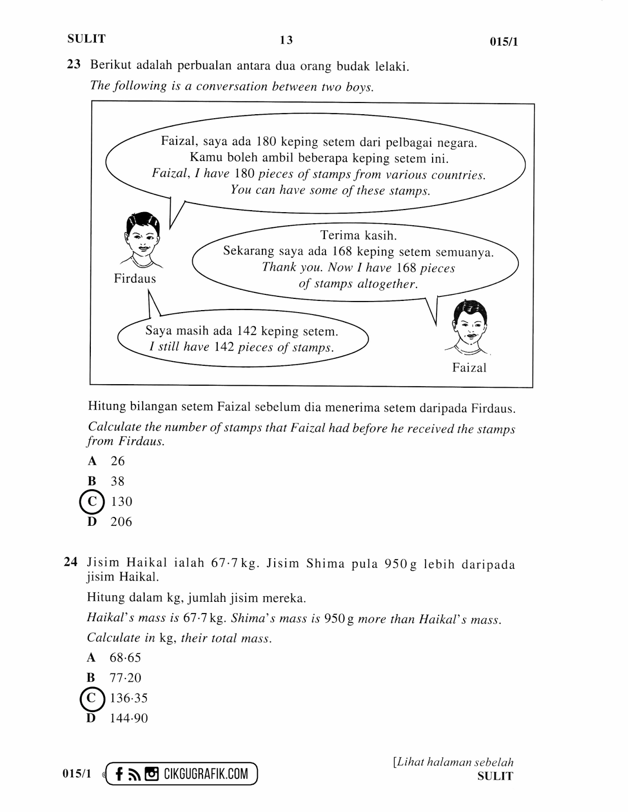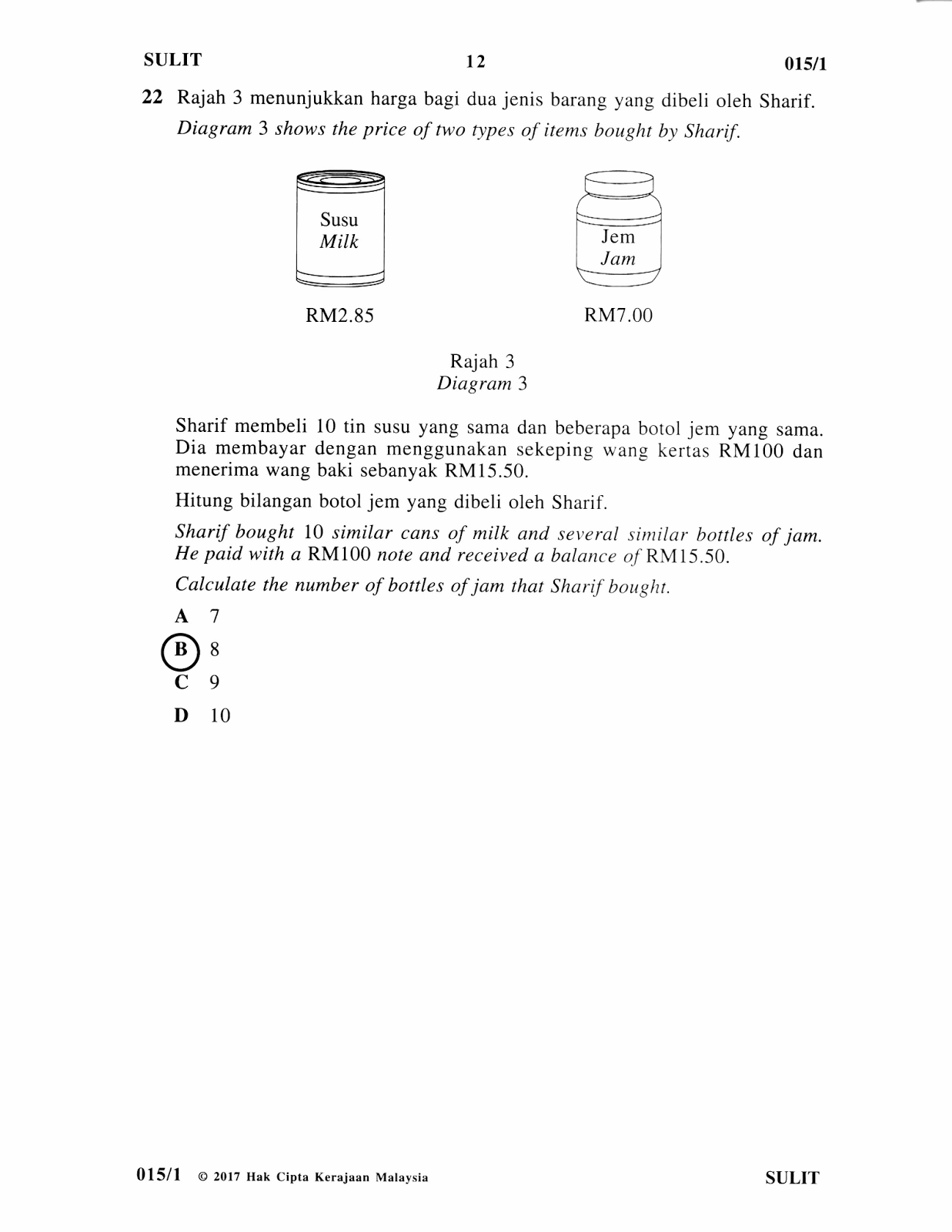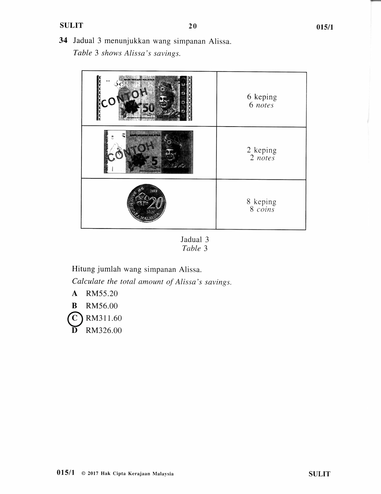 Jawapan dan Soalan UPSR Matematik Kertas 1 2017