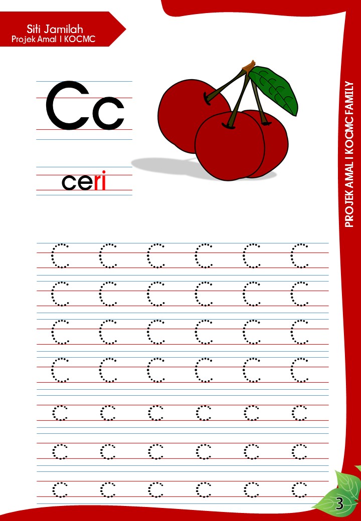 Untuk makluman semua, buku kerja Pandainya Adik, edisi Tulis ABC ini merupakan PROJEK AMAL KOCMC yang pertama keluaran warga KOCMC (Kelas Online Clipart bersama MC). Ia merupakan hasil kerjasama KOCMC FAMILY . Seramai 25 orang ahli yang telah menjayakan projek amal ini. Terima kasih dan syabas kepada semua ahli atas kesudian meluangkan masa dan tenaga dalam menjayakan projek ini.